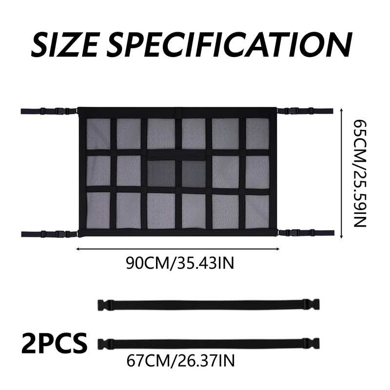 2. The car luggage net is also equipped with 2 reinforced straps to better fix items, prevent sagging and at the same time not cover the rear view mirrors - for maximum driving safety.