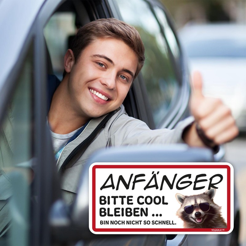 Have you recently got your driving licence? Congratulations! At first, you are still unsure in some situations, needs a little more time starting or changing lanes and wishes patience from other road users - with the cute magnetic sign you will alert other drivers that you are a beginner. You will certainly understand if it takes a little longer, keep more distance or are more patient before pressing the horn again. If you are no longer a new driver, simply remove the magnetic sign from your vehicle - without leaving any residue. The magnetic sign is 20 x 10 cm. The material is wipe-clean, sealed, UV and weather-resistant, as well as non-yellowing. Best adhesion on smooth surfaces. Note: Protect from permanent sunlight and remove the magnetic sign when not in use. Not suitable for car washes. We wish you a safe and good ride!