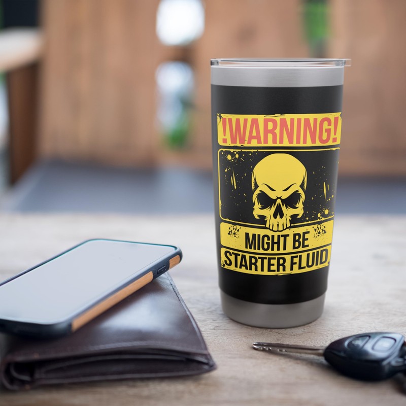 Car Mechanics, Might Be Starter Fluid Label, Funny Mechanic Stainless Steel Insulated Tumbler