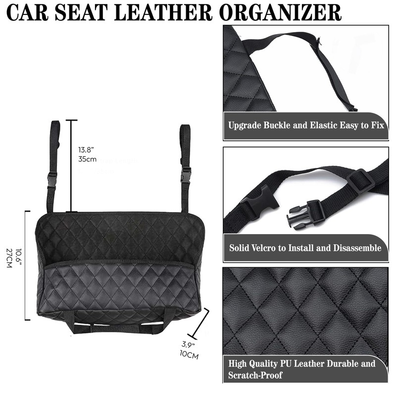 - PRACTICAL DIMENSIONS: This Purse Holder for Car measures 14 inches in length with 9-inch height and 5.9-inch depth. It is perfect for daily commuters to keep belongings organized and accessible.
