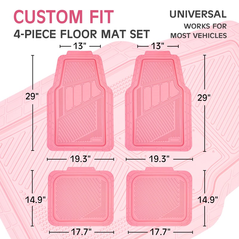 CAR PASS Heavy Duty Rubber Floor Mats 4-Piece,Pink Car Mats Full Sets Anti-Slip,Waterproof Universal Trim-to-Fit for Car SUV Truck, Durable All Weather Automotive Car Mats for Women,Girly(All Pink)