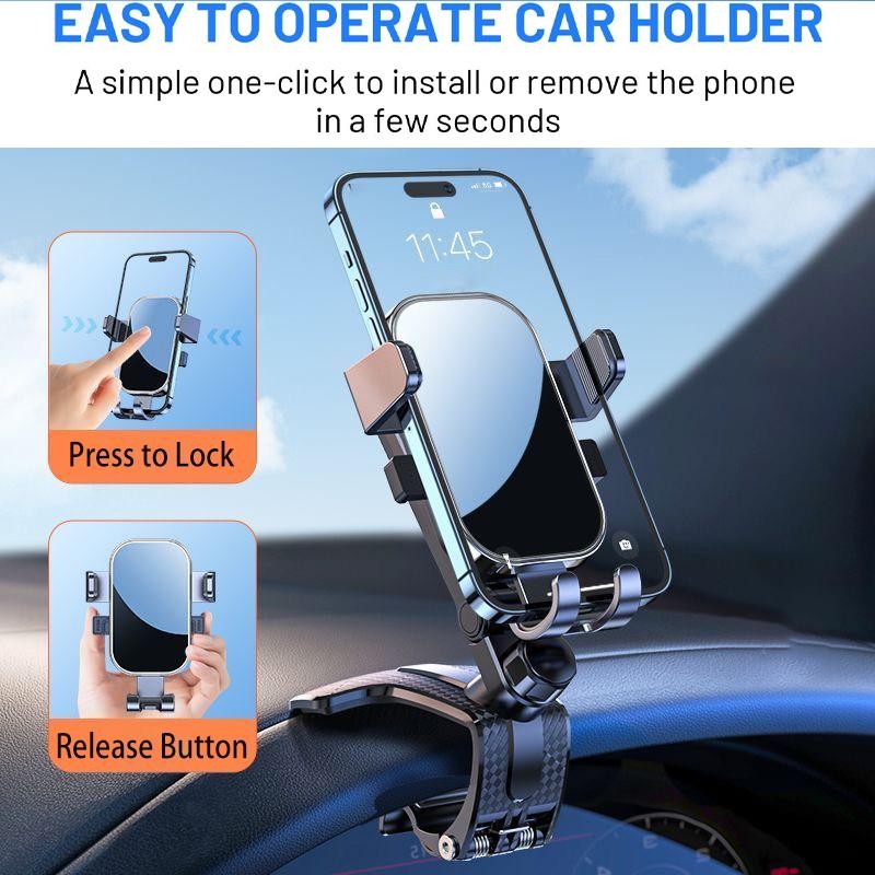 Car Phone Holder Dashboard 360 Degree Rotation - Multifunctional One Hand Operation Clip Design Phone Mount Compatible with 4-7 inch Smartphones