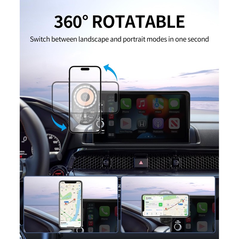Masergogo Wireless Charging car Phone Holder for Honda HRV HR-V/CRV CR-V/Hybrid 2023-2025 Accessories 7/9 inch Screen Fixed Clip,360° Rotation car Phone Mount Compatible with MagSafe