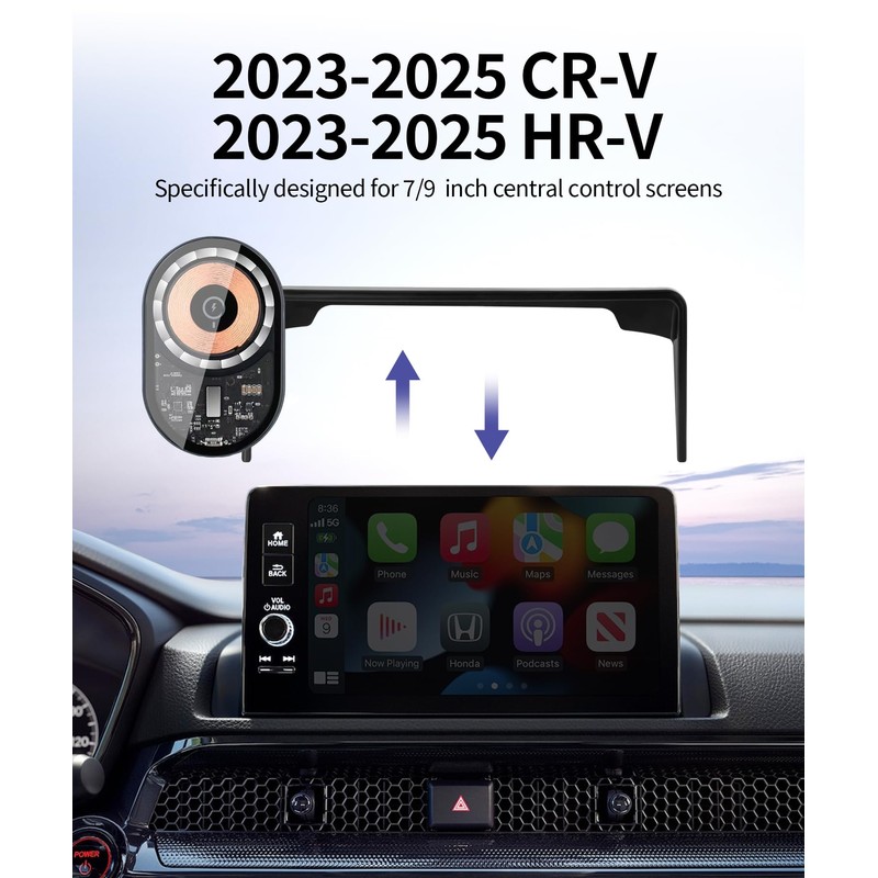 Specially designed for 2022 2023 2024 2025 Honda CR-V/Hybrid/ 2023 2024 2025HR-V Accessories. This phone holder is installed on a 7/8 inch screen only and does not affect screen operation. NOTE: