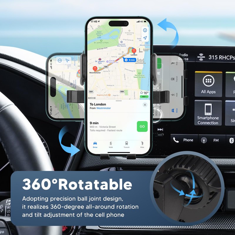 • 【360 Degree Rotation Phone Holder】Adopting precision ball joint design, it realizes 360-degree all-around rotation and tilt adjustment of the cell phone. Whether it's for navigation, calls or entertainment, you can find the best viewing angle, making your driving safer, more comfortable and more convenient.