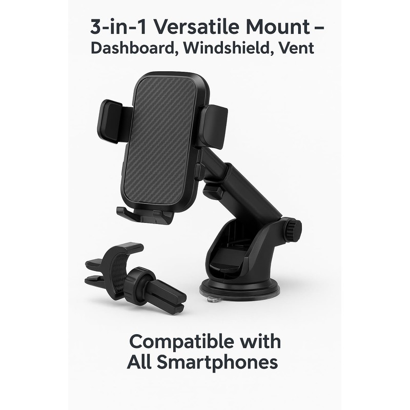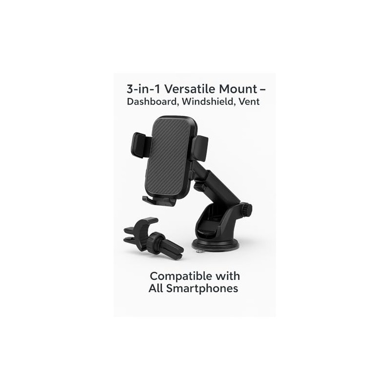 - DUAL INSTALLATION: Features both a strong suction cup mount for dashboard/windshield and an air vent clip for versatile mounting options