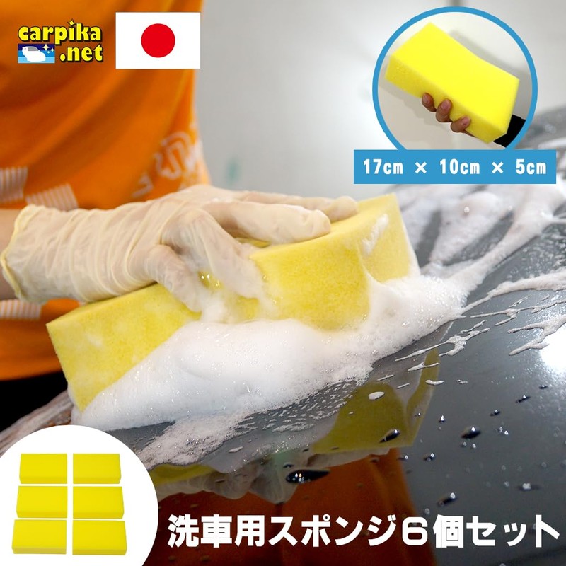 Car Picanet Car Wash Sponge, Set of 6, Developed for Car Wash, Just the Right Hardness and Size to Fit Your Hand, Car Sponge, Scratch-Resistant, Easy to Clean, Coated Car Wheel