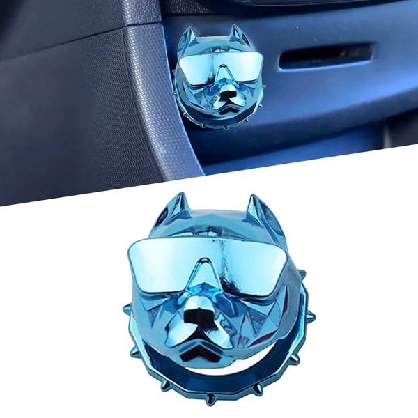 Car Push to Start Button Cover,Bulldog Push Start Stop Button Cover, Suitable for Most Automotive Engine Ignition Switch Protective Covers, Start Button Decorative Stickers, Decorative Rings (Blue)