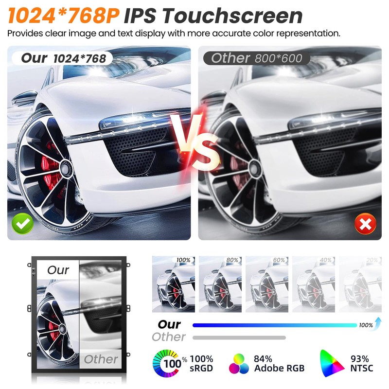 - 【1024 * 768 High Resolution】10.4 inch touchscreen with IPS 1024*768 HD resolution, Compared with the ordinary, the image is clearer and smoother, which brings you an excellent visual experience.