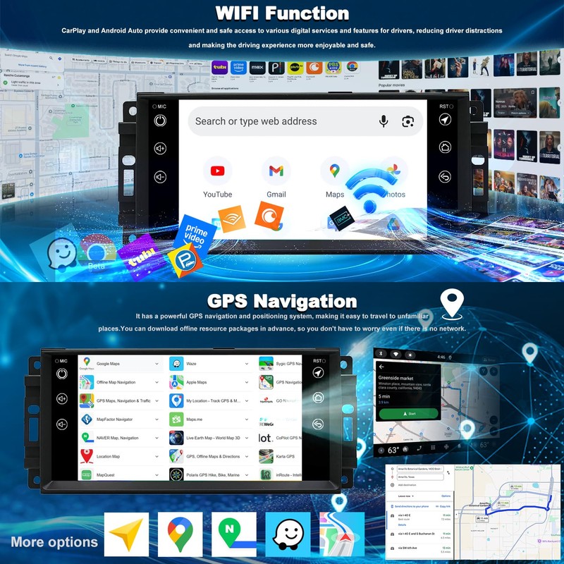 - ✅ 【Wireless CarPlay & Android Auto & HD 7inch Screen】 Car radio for jeep wrangler accessories pairs wirelessly with your phone through jeep compass radio with apple carplay and android auto, giving you hands-free calls and GPS access. enjoy smooth, vivid playback on the 7-inch IPS touchscreen anytime.