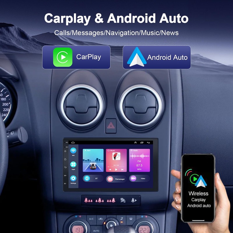 - Wireless CarPlay & Android Auto: You can easily link your smartphone and control it with language commands,Wake up Siri or Assistant to operate your stereo, control apps, and perform various functions, all without taking your hands off the wheel.You can focus on driving while wirelessly accessing features like map navigation, answering calls, playing music and more