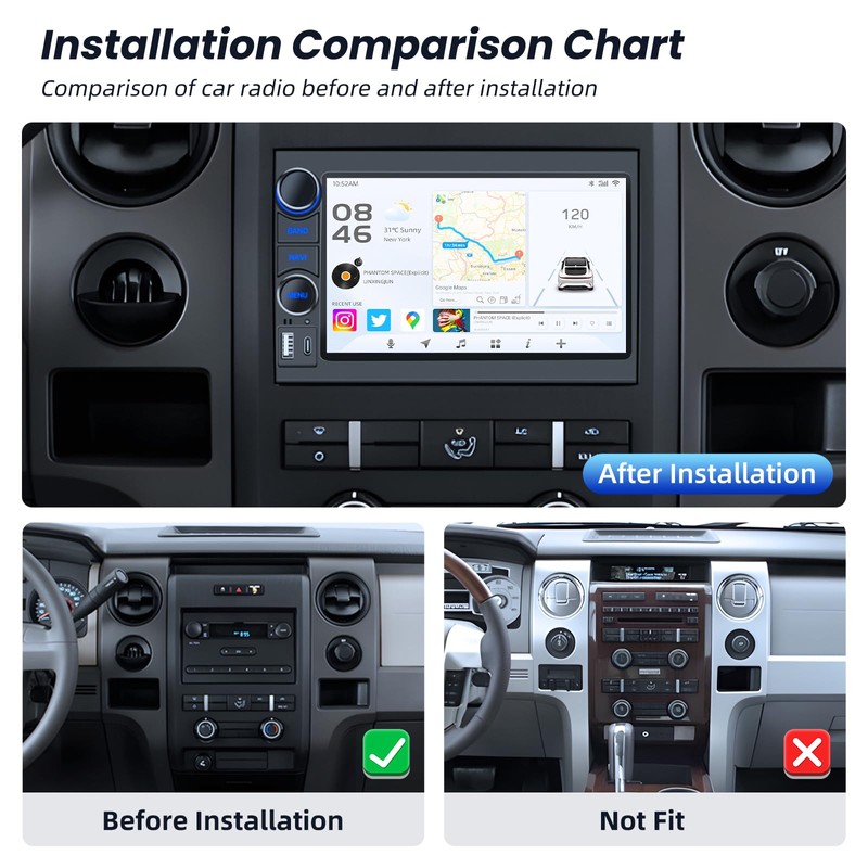 - 【Wireless Carplay&Android Auto】Simply pair your mobile phone with your car radio for seamless connectivity. Enjoy music, navigation and other mobile phone features with ease without complicated cable connections or manual setup.