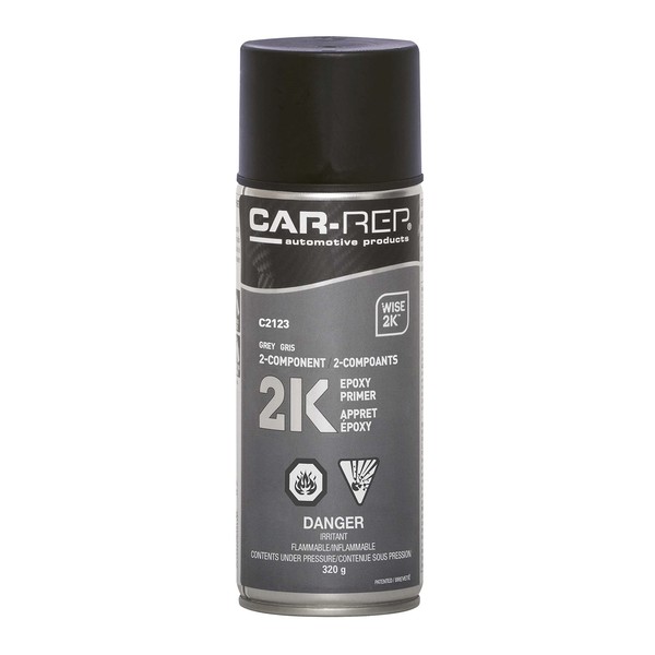 Car-Rep® 2K Epoxy Primer with Wise 2K Technology, Suitable for All Kinds of Metals, Carbon Fiber Substrates, Most Automotive Plastics, Grey, 11oz Aerosol Can