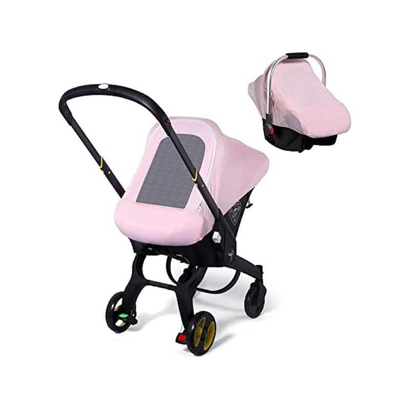 Car Seat Covers for Babies, Original Baby Car Seat Cover for Girls Boys, Stretchy Infant Carseat Canopy with Adjustable Breathable Mesh Window & Pocket, Kick-Proof Stroller Cover for Spring Summer