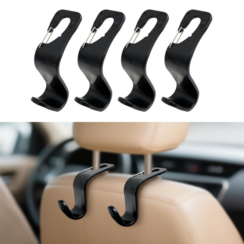 Car Seat Hooks 4 Pack | Back Seat Organizer | Hook for Purse Bag Grocery Storage - Heavy Duty Interior Accessories