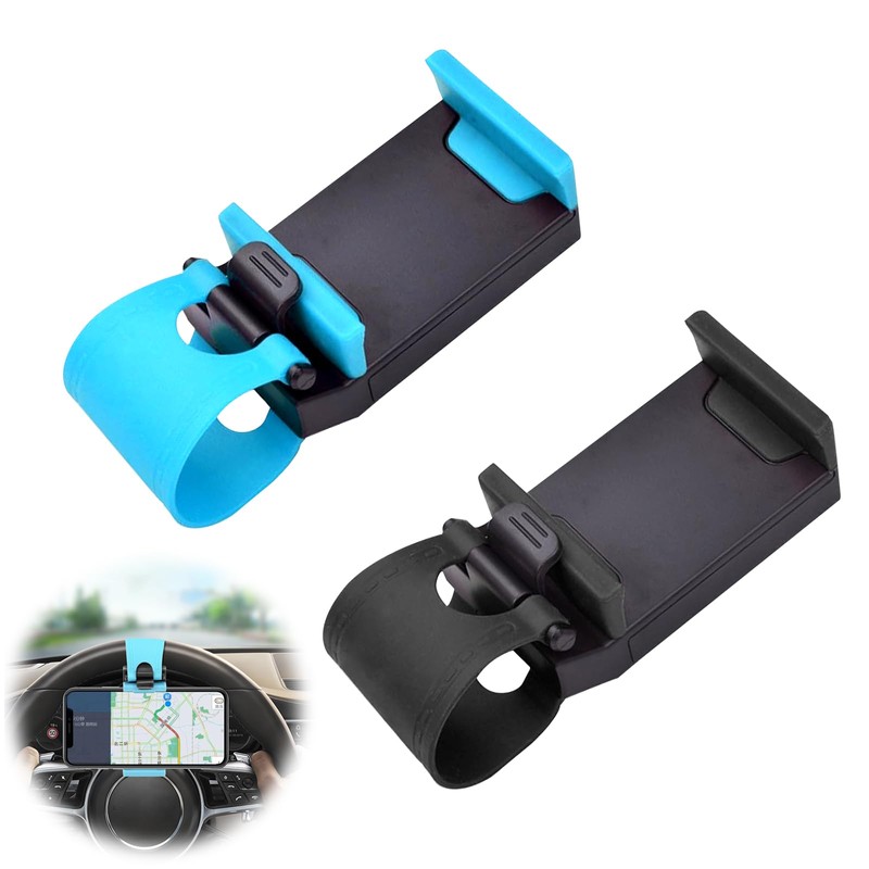 Car Steering Smartphone Holder, Set of 2, For Car Steering Wheel, Handsfree Steering Holder, Car Steering Wheel Phone Holder, Hands-Free Steering Wheel Phone Holder, Handle Wrap, Anti-Slip, Easy