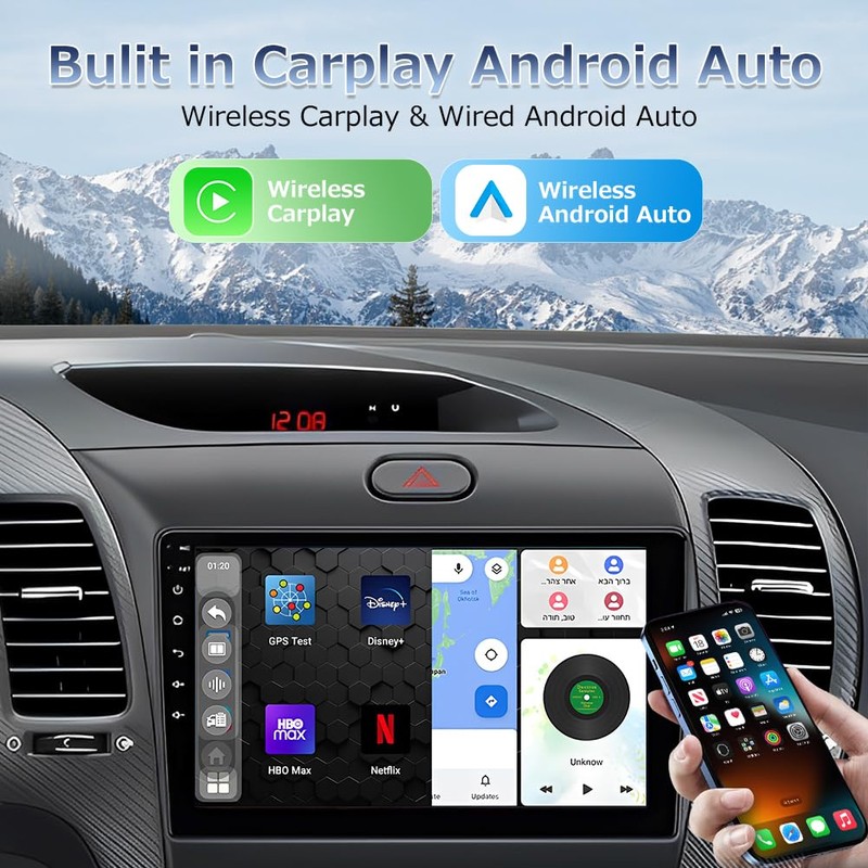 - Wireless CarPlay and and Android Auto: Bulit in Wireless Carplay & Wired Android Auto, support to use smart voice assistant or touch the display, you can get directions, make calls, send and receive messages, and enjoy music etc. A smarter, safer and more fun way to use your phone in the car, and keep you stay focused, connected and entertained.