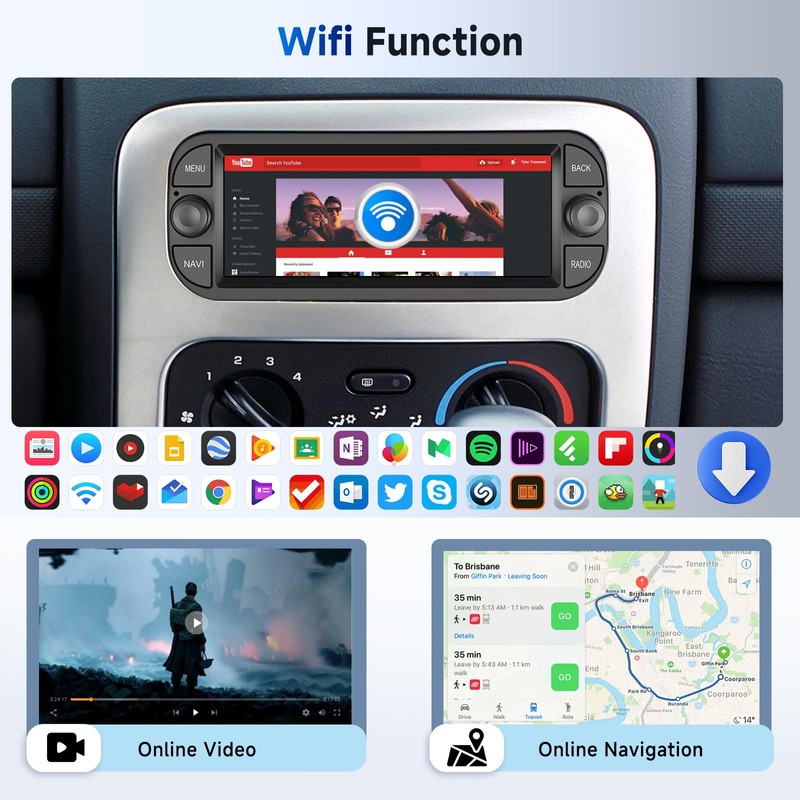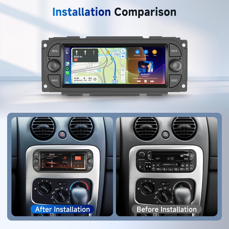 - GPS Navigation, WiFi: For Chrysler car stereo built-in offline maps, support online maps after connecting WiFi or Apple car play. The built-in Wifi module supports high-speed Internet access, online location and navigation, and web browsing. This Android 13 system dodge ram 1500 carplay also supports installing or removing apps from the app store