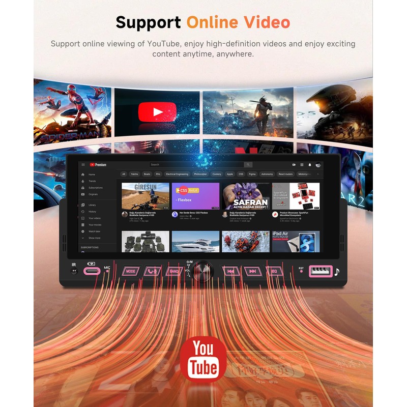 - Bluetooth 5.2 and FM radio and EQ: Single Din touch screen car stereo with bluetooth 5.2, support hands-free answering and making calls, playing music intelligently. FM/RDS radio with high-quality stereo, which can search channels in full-automatic ways,semiautomatic way and acurate adjustment way, Listen to music, newsletters and traffic information anytime, anywhere. Hardware electronic sounds (EQ) processing, multiple EQ modes, treble and bass can be adjusted.