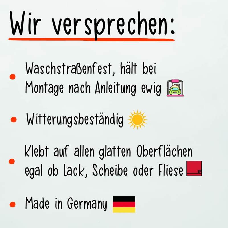 - Quality: Made in Germany made of branded film, the Waschstraßen and weather resistant – To Place each sticker the no car paint while – very good adheres to any smooth surface.