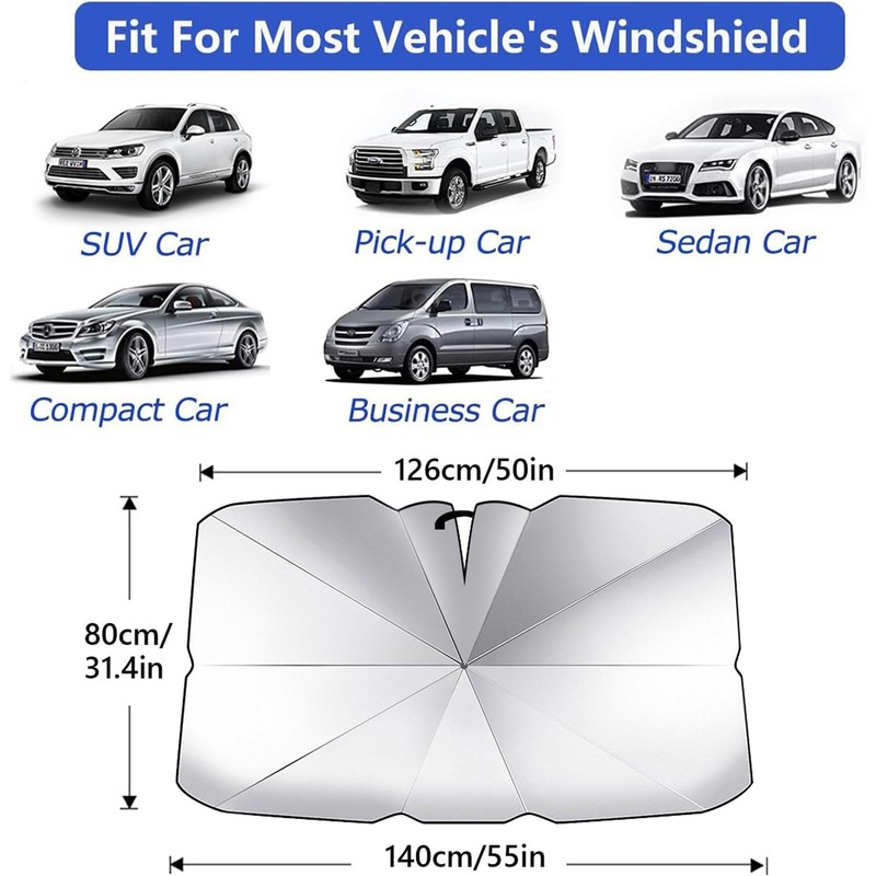 Car front window sunshades umbrella fit most vehicle models without light leaking in size 57x31 Inches (140x80cm)
