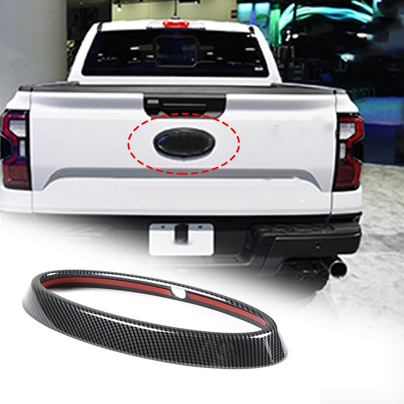 Car Tailgate Emblem Badge Logo Trim Cover Compatible with Ford Ranger 2023 2024 Rear Trunk Logo Cover Rear Tailgate Emblem Badge Logo Cover Accessories (Carbon Fiber Grain)