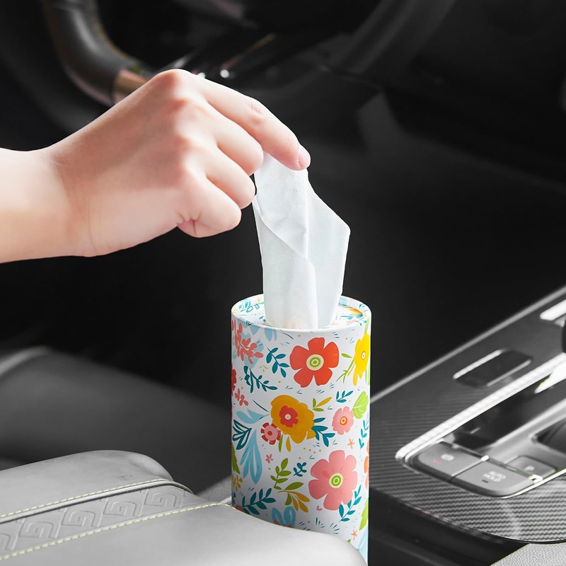 Car Tissue Cylinder - 4 Pack, 50 3-Ply Tissues per Cylinder, Fits Car Cup Holders, Portable, Floral Design, Round Tissue Box for Car