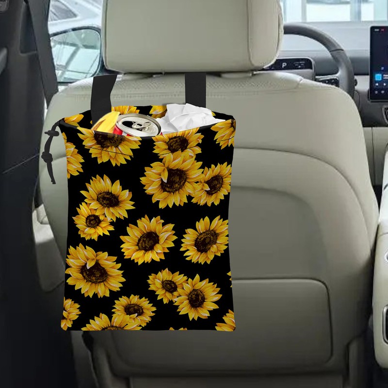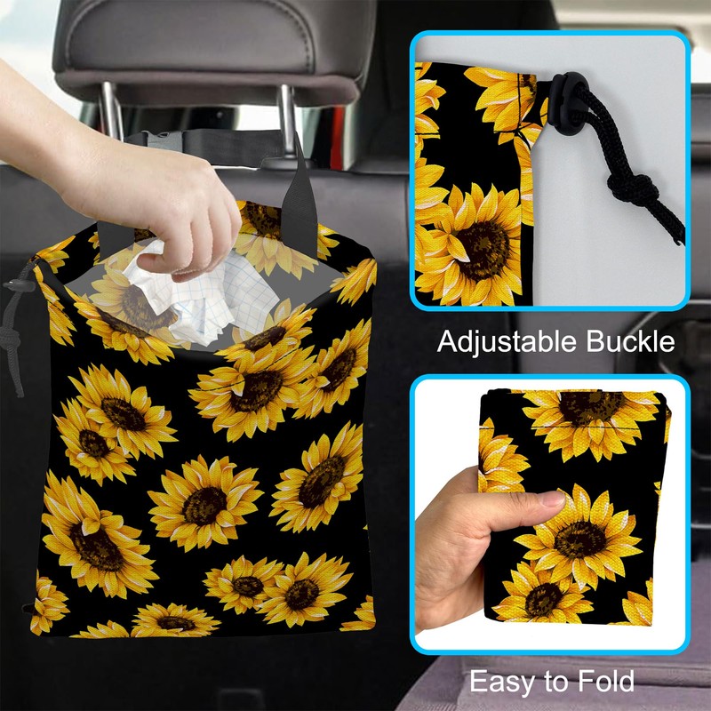 - High-quality Waterproof Material: This Sunflower car trash bags are made of original waterproof fabric, 100% polyester, embedded with TPU, waterproof, leak-proof, easy to clean, washable and reusable