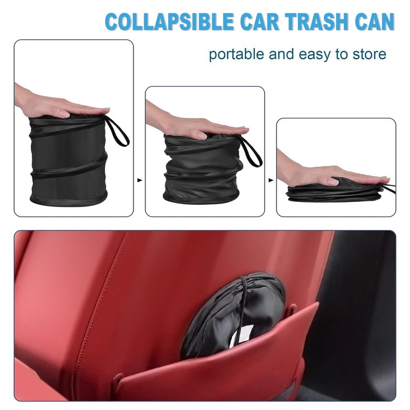 - 【Ultra-Compact & Foldable】: Designed for on-the-go lifestyles, this foldable car trash can flattens when not in use and stays secured with an elastic band. Ideal for tight spaces like door pockets, seat gaps, or trunks, keeping your vehicle clutter-free.