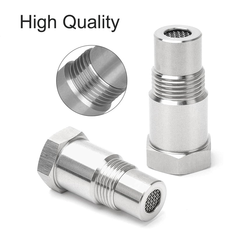 - [High level of safety]:The oxygen sensor adapter is equipped with a mini filter net to improve the safety of the vehicle. Thread cutting with special tool, perfect precision and repeatability.