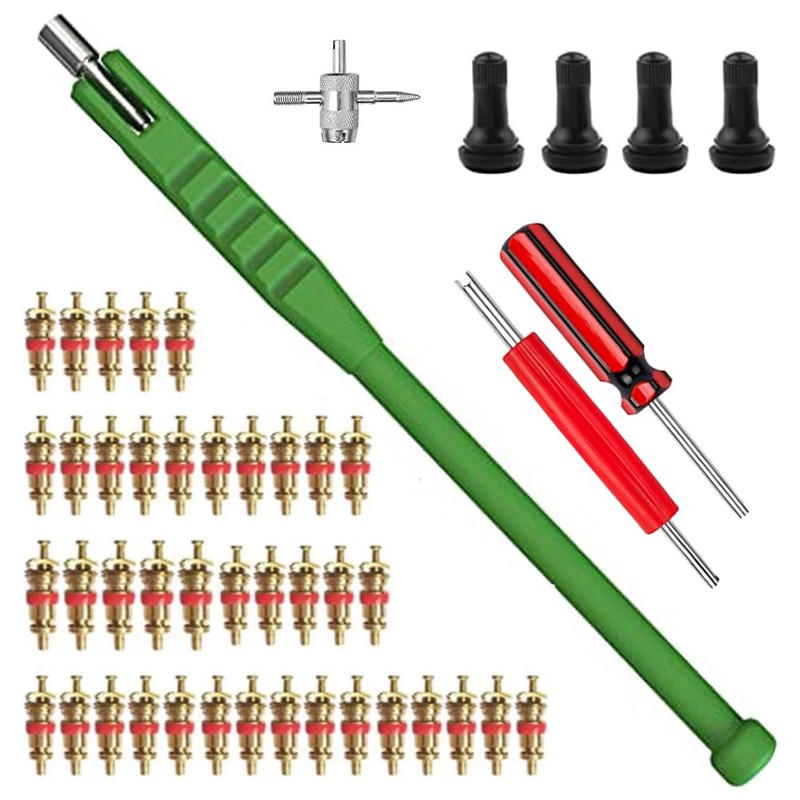 - Valve Core Replacement/Installation Kit, designed to make maintaining your tires a breeze. This comprehensive kit includes 43 pieces of tyre valve core, ensuring you have an ample supply for any replacements or repairs. The kit also features essential tools such as 1 tyre valve remover, 1 tyre valve puller tool, and 4 in 1 tyre valve remover, providing you with everything you need for hassle-free valve maintenance.