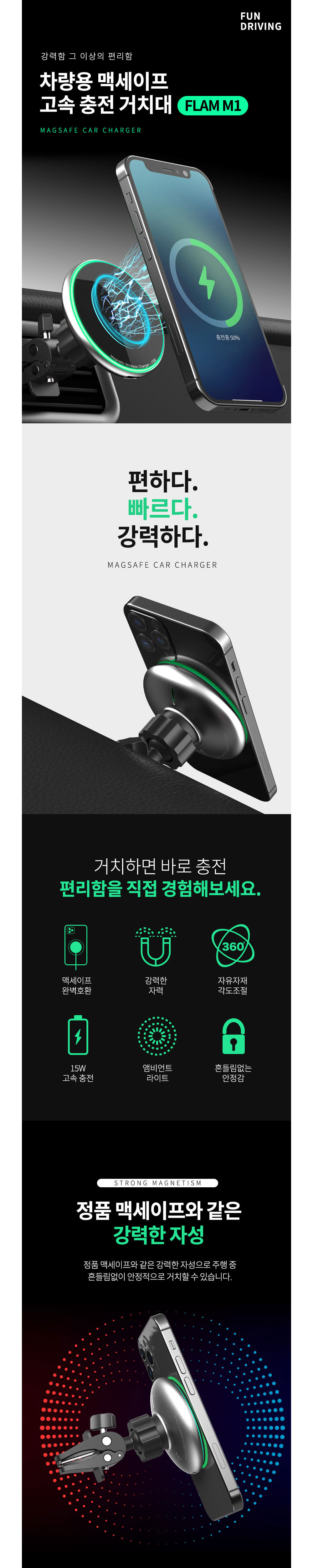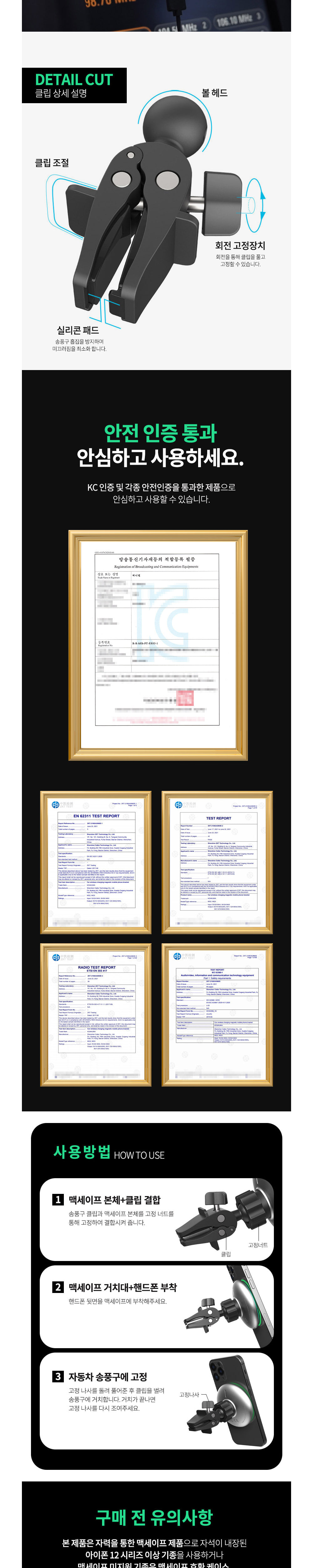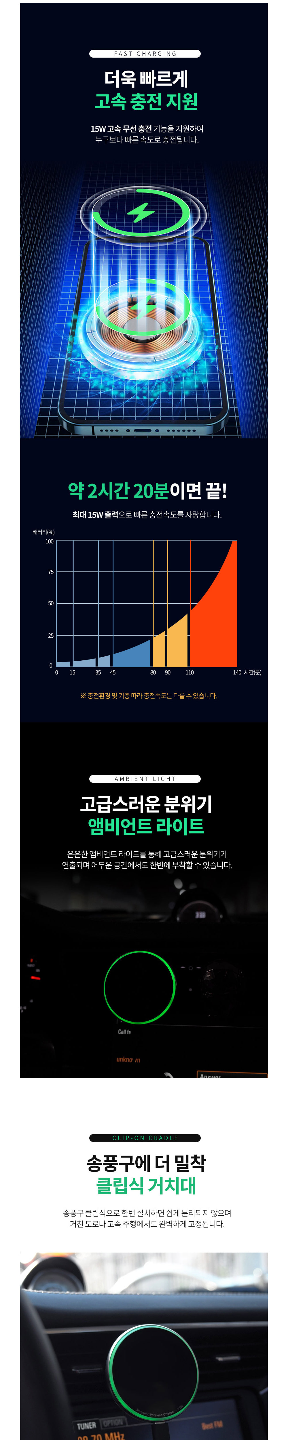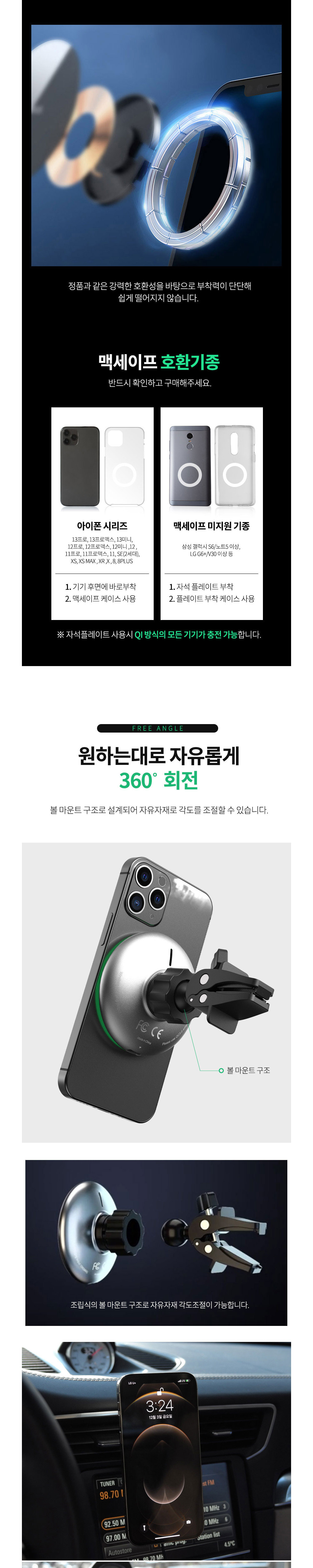 차량 송풍구고정 맥세이프 무드등무선충전거치대 핸드폰거치대