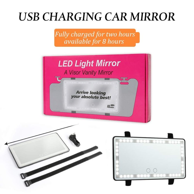 • USB POWER SUPPLY AND built-in lithium battery -This car sun visor mirror with lights be powered by USB and also chargable which can be charged through the car, socket, computer, mobile power, free to use the car beauty mirror at anywhere and anytime. The service life of the lighted mirror is up to 50,000 hours.