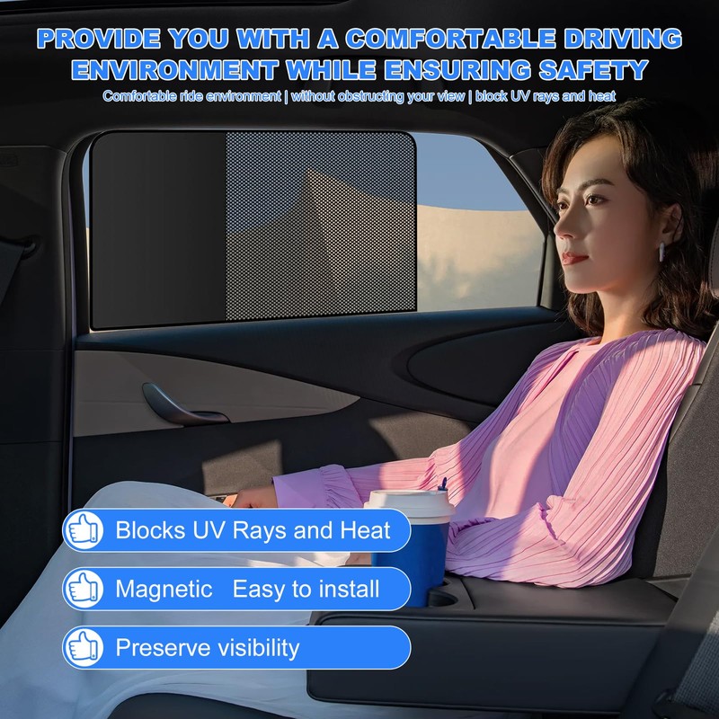- Blocks UV Rays and Heat: This car window screen effectively blocks UV rays, reduces interior temperature.