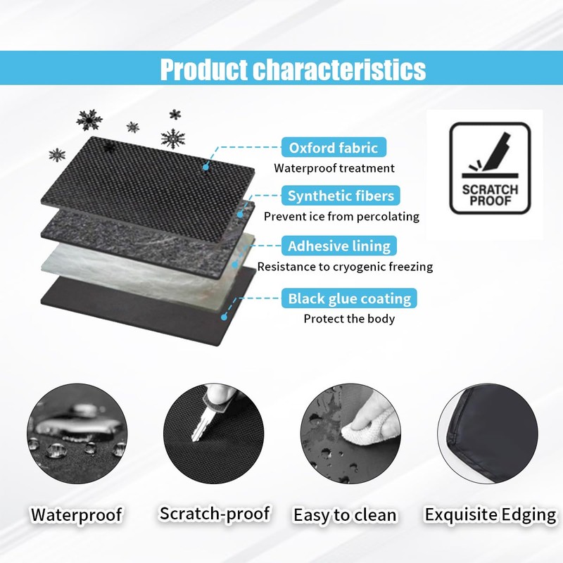 -The car snow cover is waterproof and won't get wet even after hours, keeping the windshield, wipers, and rearview mirrors clear.