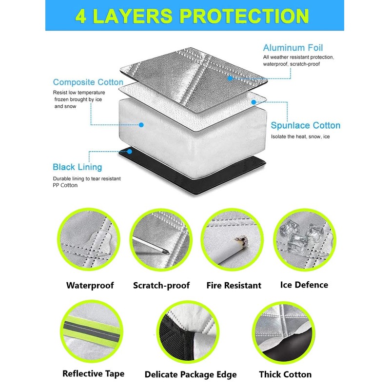 Car Windshield Cover Heavy Duty Premium 4 Layers Thick Protective Windscreen Cover Mirrors Cover Snow Ice Frost Sun UV Dust Water Resistent Pefect Fit for Cars SUVs All Years Magnetic Carry Bag