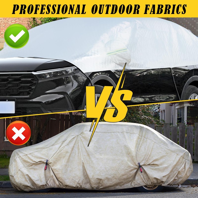- 【FULL COVERAGE car snow cover】This car snow cover can protect your windows, windshield, roof, back of car at the same time. Don't waste your money on a single function car cover. We have 2 types half car snow cover, sedan and SUV.Suitable car size 157-197in, Suitable for SUV size: 173-197in, They are compatible with most sedans, off-road SUVs on the market.