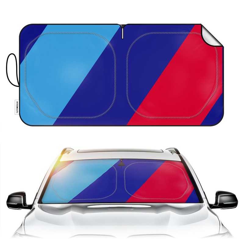 - Effectively Blocks Sun Exposure And Reduces The Temperature Inside Your Car. When Your Car Is Baking Under The Hot Sun, Soon The Temperature Inside The Car Will Be Very High And The Plastic Parts And Leather Inside The Car Will Have Problems. M Tricolor Elements Windshield Sunshade Effectively Blocks The Scorching Uv Rays And Heat.