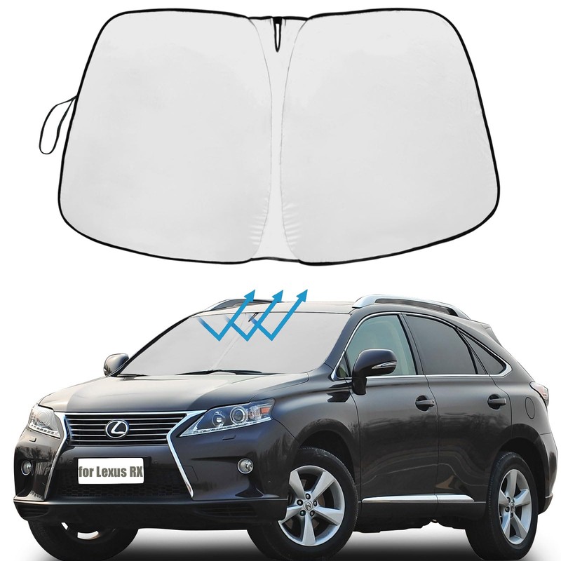 - 【Vehicle Specific】Custom design! Our Lexus RX front windshield shade has been custom cut specifically for Lexus RX. Accurate fit design and Reinforced steel rings make a precise and secure fit to the window, no need to use suction cups to hold it in place. It won't sag or collapse like other car heat shields. The Sun Shade Fits for Lexus RX SUV 2015 2014 2013 2012 2011 2010.