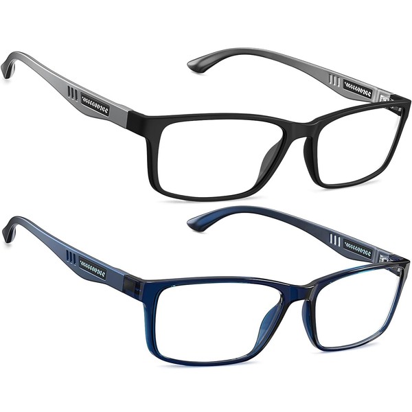 CARA 2 Pack Superior Lightweight TR90 Reading Glasses for Men Durable Rectangular Frame, Blue Light Blocking Eyeglasses (Black+Blue, +1.25)