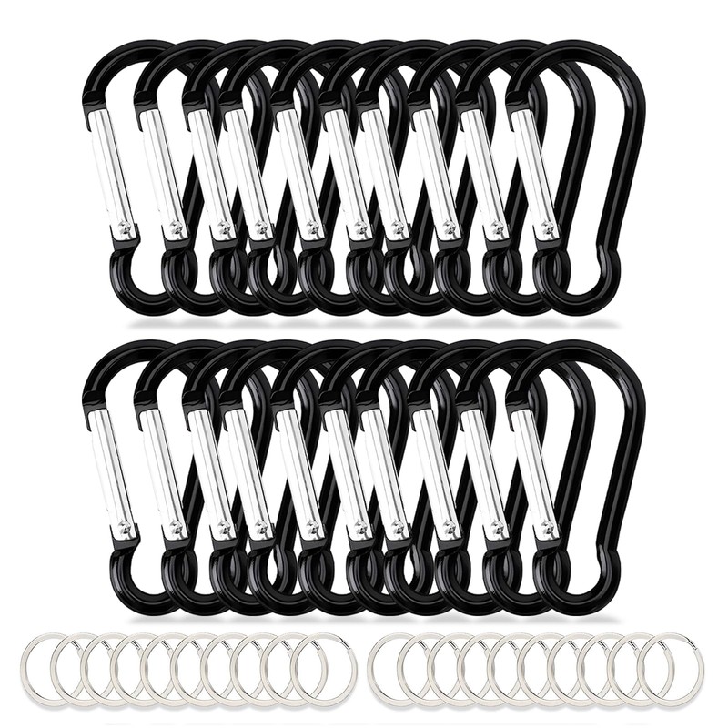 - 💖【Quantity & Dimensions】The package includes 1.81" Carabiner clips (20 pcs) and 1" steel rings(20 pcs), in total 40 pcs (Carabiner Clip Keychains as pictures). Our aluminum caribiners and steel rings are durable and easy to open and close.