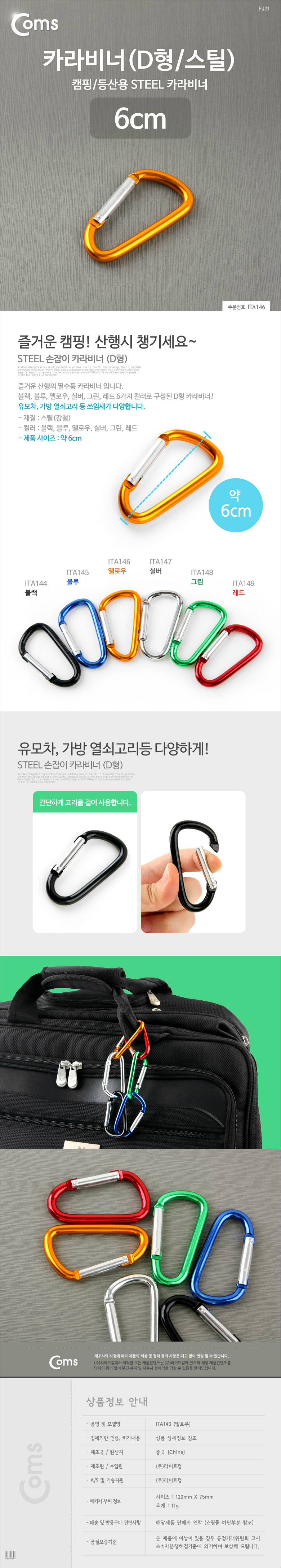 Carabiner (D-type steel) Yellow 5ea