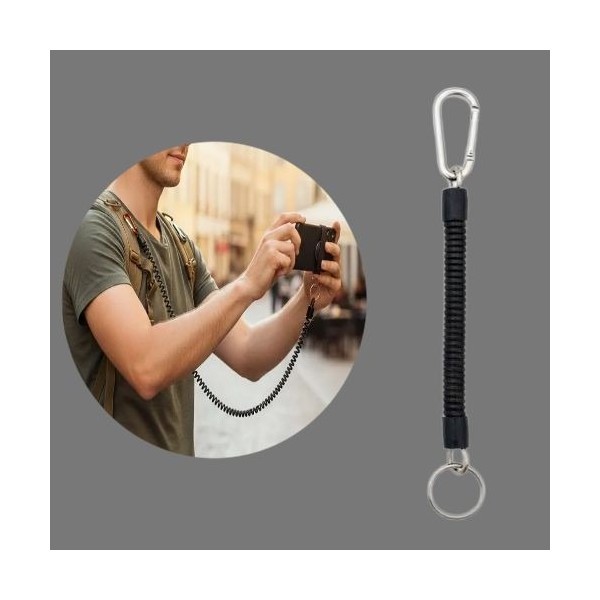 Carabiner loss prevention reel wire spring rope (silver color) 6ea