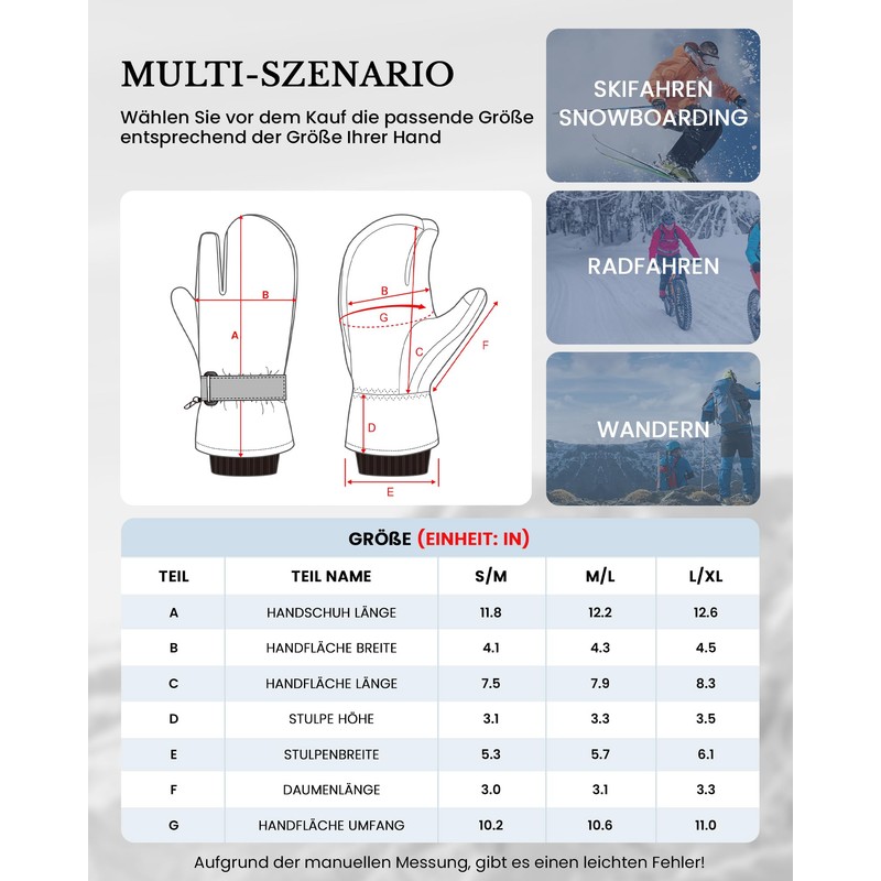 - ️🔥 Super Warm & High Quality: Our winter ski gloves are perfectly insulated. The outer layer is made of 100% polyester with TPU water-repellent coating. Soft fleece lining and Thinsulate insulation ensure quick hand warmth even in icy cold. With these snowboard gloves, your hands will stay warm and cozy for extended hours on the slopes. 2
