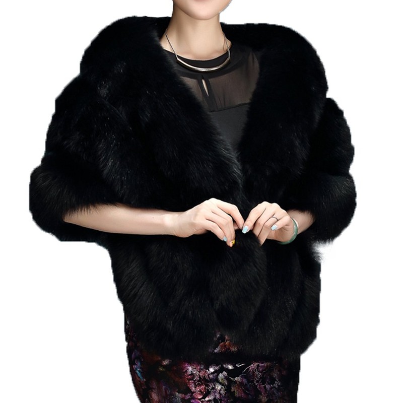 Caracilia Women Luxury Faux Fur Coat Jackets Wrap Cape Shawl for Wedding Party