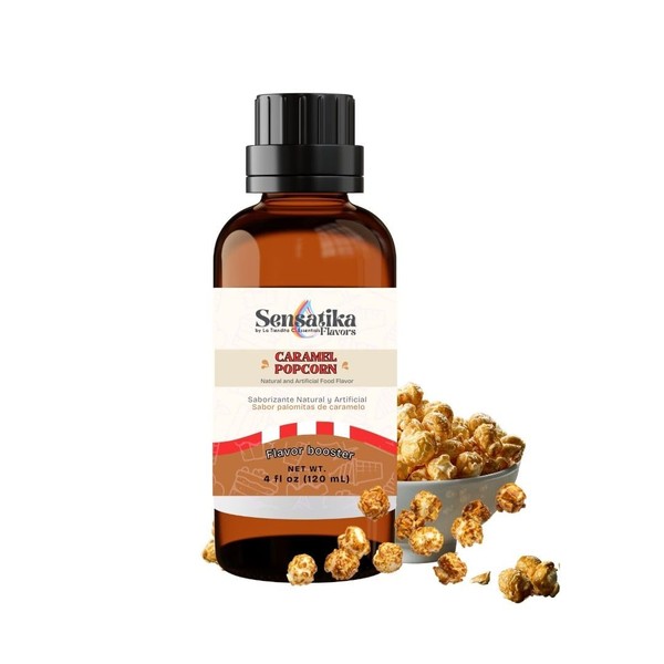 Caramel Popcorn Natural & Artificial Flavor Sensatika 4 fl oz - Natural and Artificial Food Flavor for coffee syrups, baking, ice cream and desserts