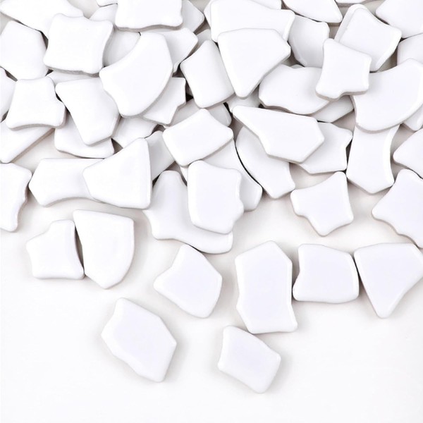 CarAngels Ceramic Mosaic Tiles DIY Home Decor Handmade Craft Ceramic Crafts 500g Irregular Geometric Pattern 2-4cm (White)