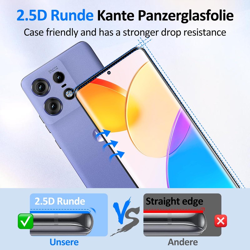 - 9H hardness scratch resistance for Motorola Edge 50 Pro tempered glass protection: Motorola Edge 50 Pro protective glass screen protector uses precision laser technology. The tempered glass screen protector with 9H hardness, the screen protector can fully resist scratches and various friction in daily use