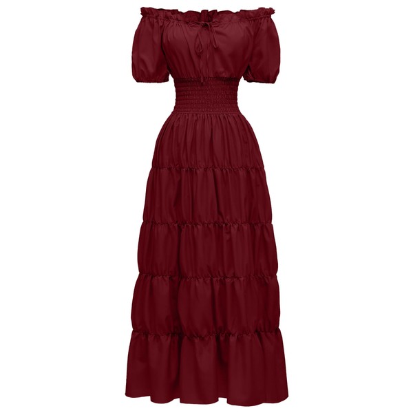 CARANXTEX Renaissance Costume Women Peasant Medieval Dress Victorian Fairy Gothic Witch Wedding Irish Under Dress Wine Red-L