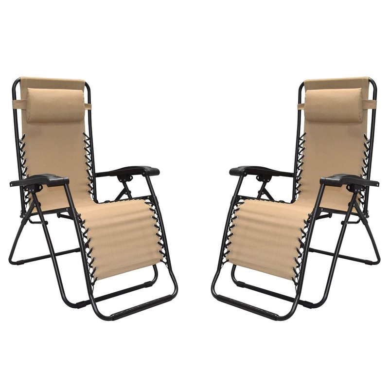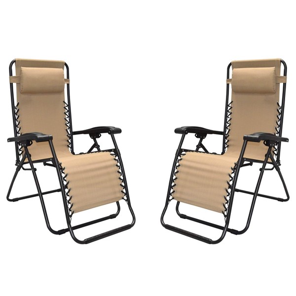 Caravan Canopy Infinity Zero Gravity Steel Frame Patio Deck Chair, Beige (Pair)